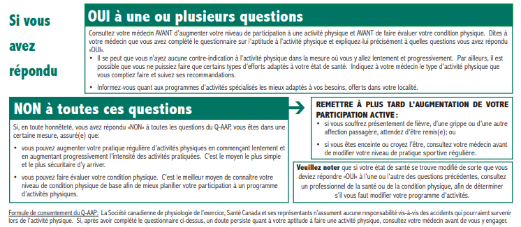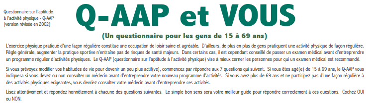 Avez-vous des problèmes osseux ou articulaires (par exemple, au dos, au genou ou à la hanche) qui pourraient s’aggraver par une modification de votre niveau de participation à une activité physique?